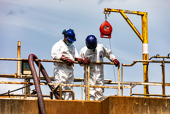 Nos équipes sont formées et habilitées aux travaux en milieu industriel : risques chimiques, transport de matières dangereuses, travaux haute pression, travaux sous appareil respiratoire isolant (ARI), travaux en espaces confinés, etc.